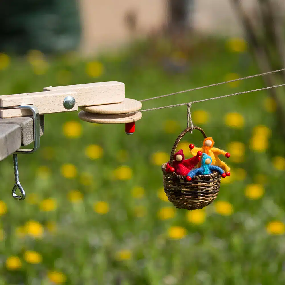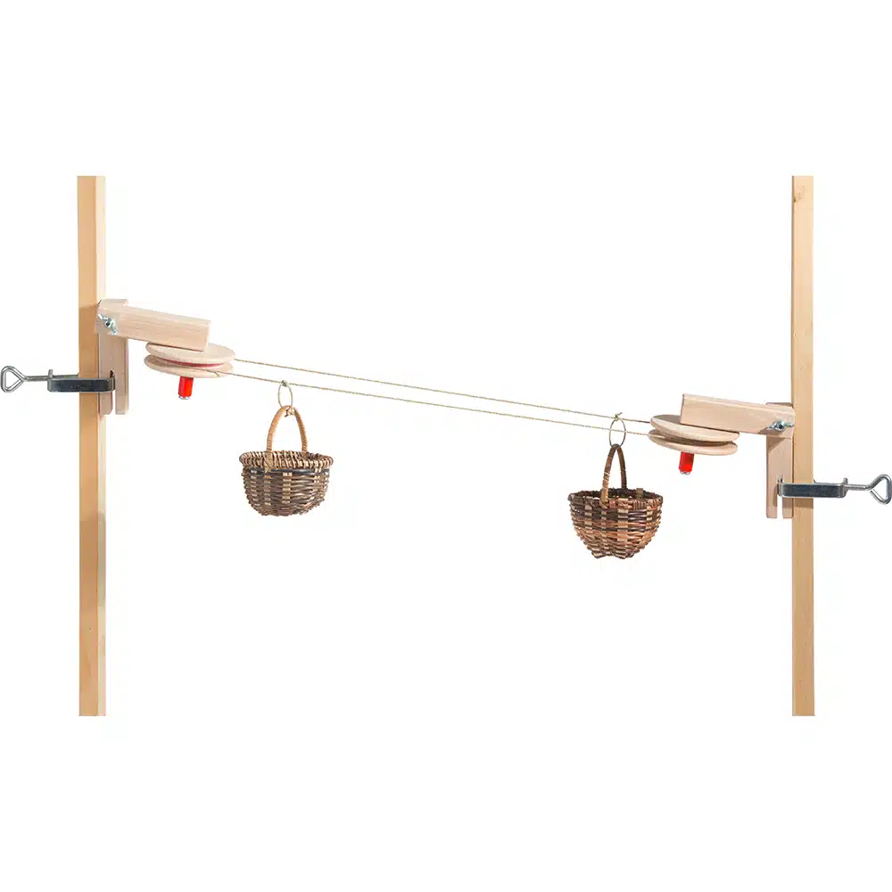 Téléphérique à paniers, kit avec 2 paniers d’environ 7 cm, 2 poulies de renvoie, 2 serre-joints et 10 mètres de ficelle.