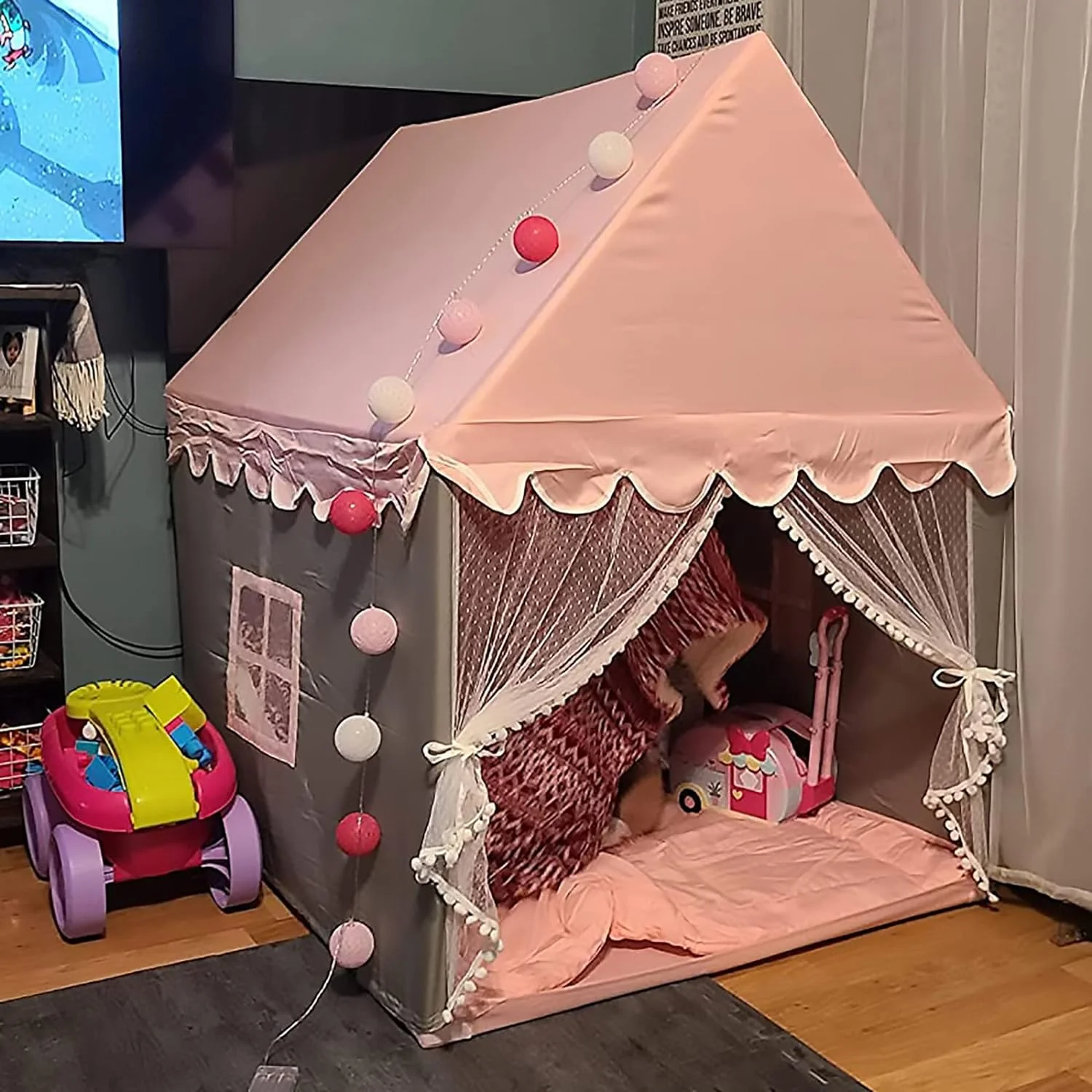 • 【Haute Qualité】Cette tente pour filles est fabriquée en tissu Oxford épais + gaze, très résistant et durable, ne dénude pas la soie et est plus pratique à nettoyer. Poteaux de support en PVC, plus légers et plus flexibles.