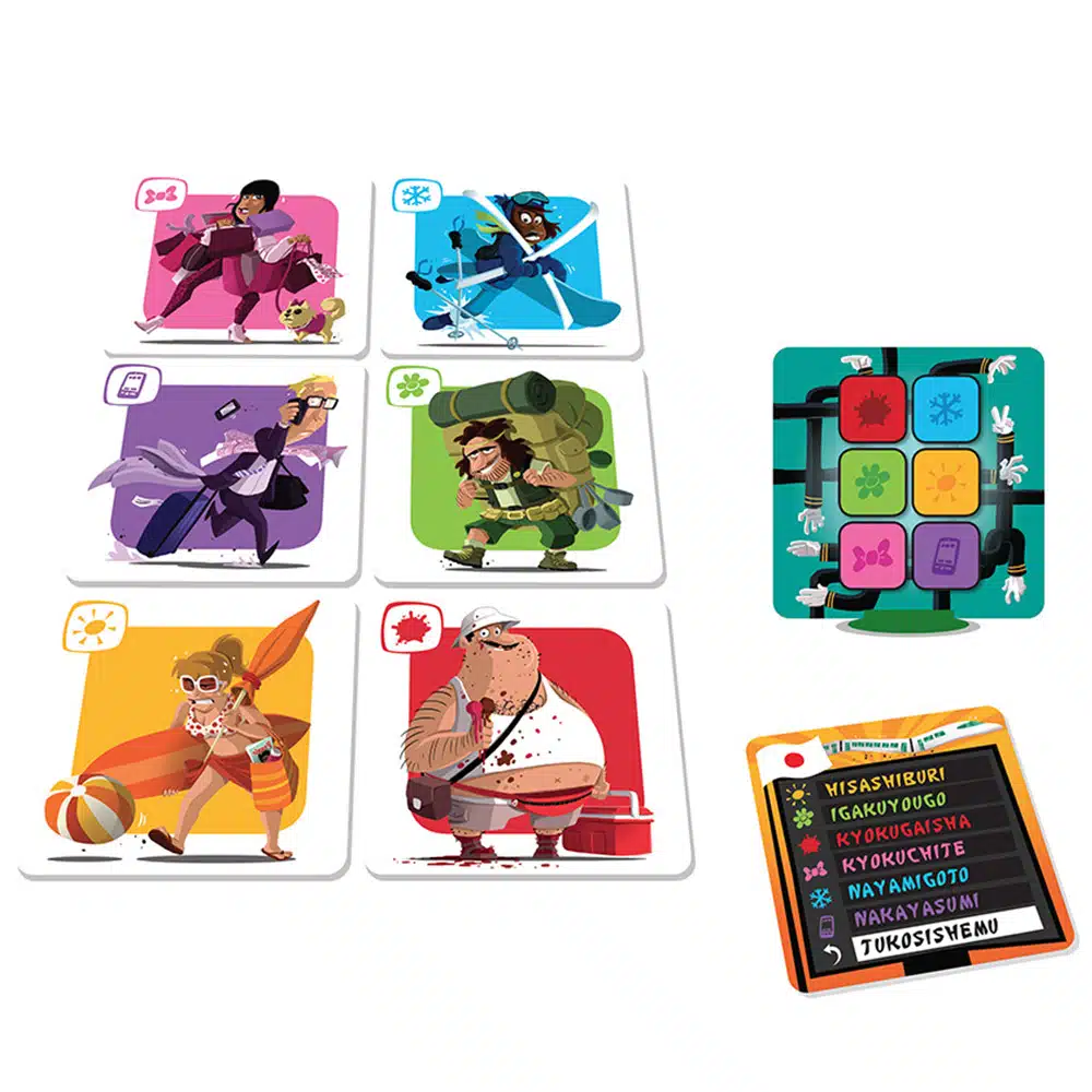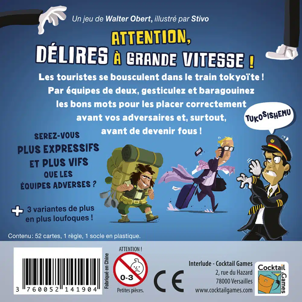 Les touristes se bousculent dans le train tokyoïte ! Par équipes de deux, gesticulez et baragouinez les bons mots pour placer les touristes correctement avant vos adversaires et, surtout, avant de devenir fous ! Serez-vous plus expressifs et plus vifs que les équipes adverses ?