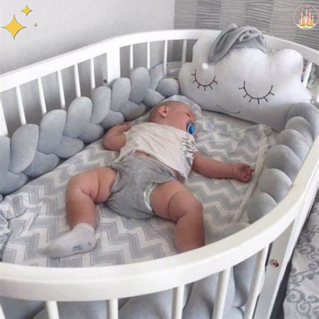 Votre nourrisson bouge pendant son sommeil et se coince entre les barreaux de son lit ? Alors découvrez cette originale protection de lit en forme de tresse :