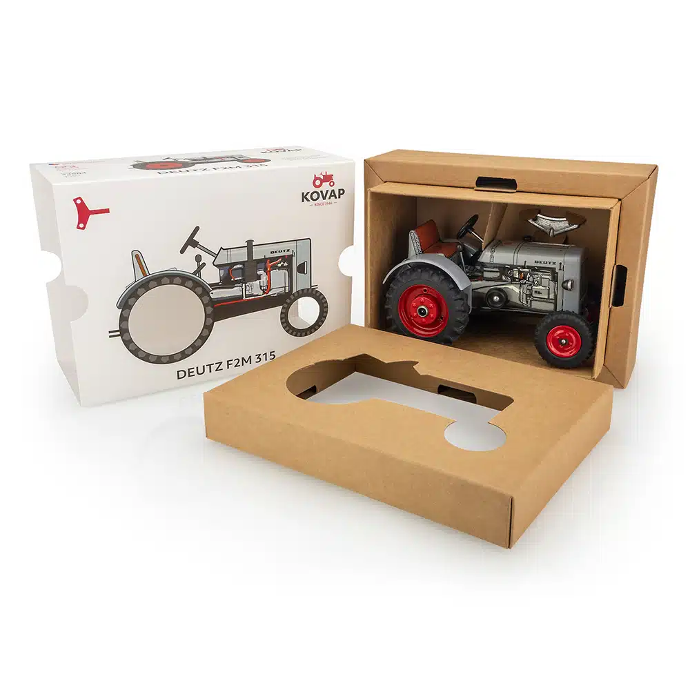 Tracteur mécanique en tôle emboutie, représentant un DEUTZ F2M 315, pourvu de 3 vitesses, un point mort et une marche arrière.