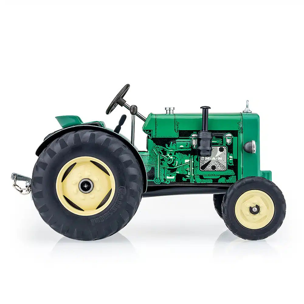 Tracteur mécanique en tôle emboutie, représentant un MAN AS 325 A, pourvu de 3 vitesses, un point mort et une marche arrière.