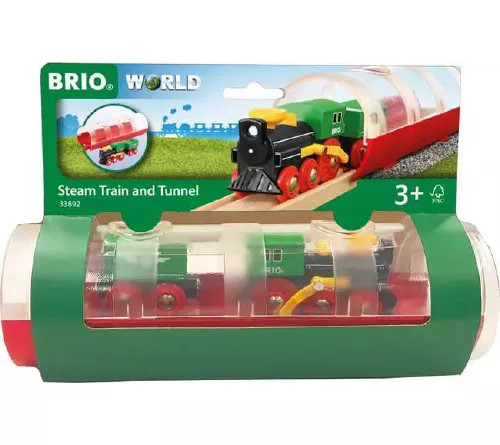 Le train à vapeur arrive dans son tunnel ! Le train à vapeur avec tunnel du BRIO World est superbement réalisé avec une conception classique et des détails en bois. L’âge d’or des petits trains est de retour et cette superbe locomotive à vapeur avec wagon vous rappellera le classique « tchoutchou » que les enfants font quand ils poussent leur train sur leur circuit de chemin de fer en bois BRIO World. L’emballage intelligent autour du train à vapeur se transforme aussi en un élégant tunnel transparent. Connectez-le simplement au sein de votre circuit de chemin de fer en bois BRIO…