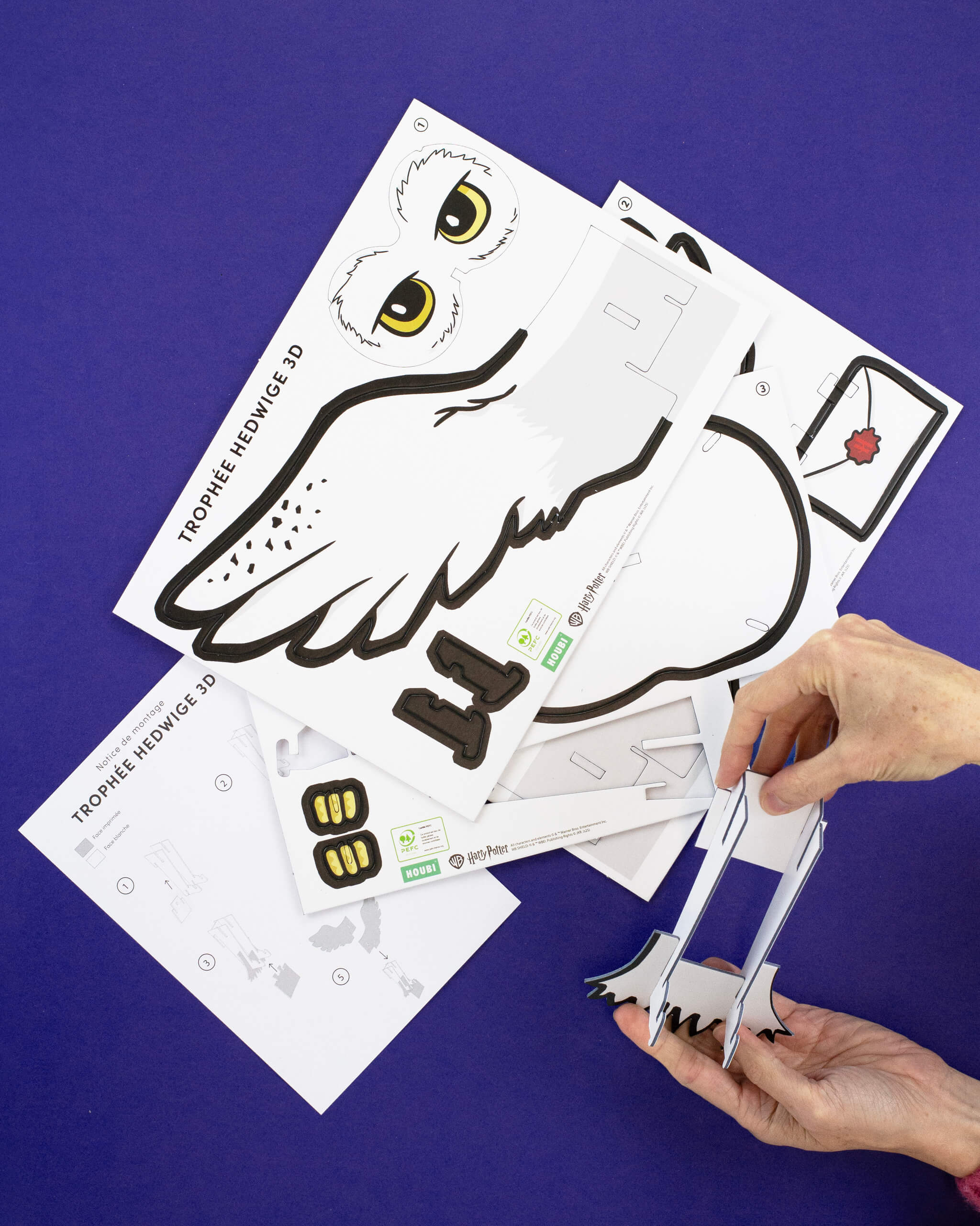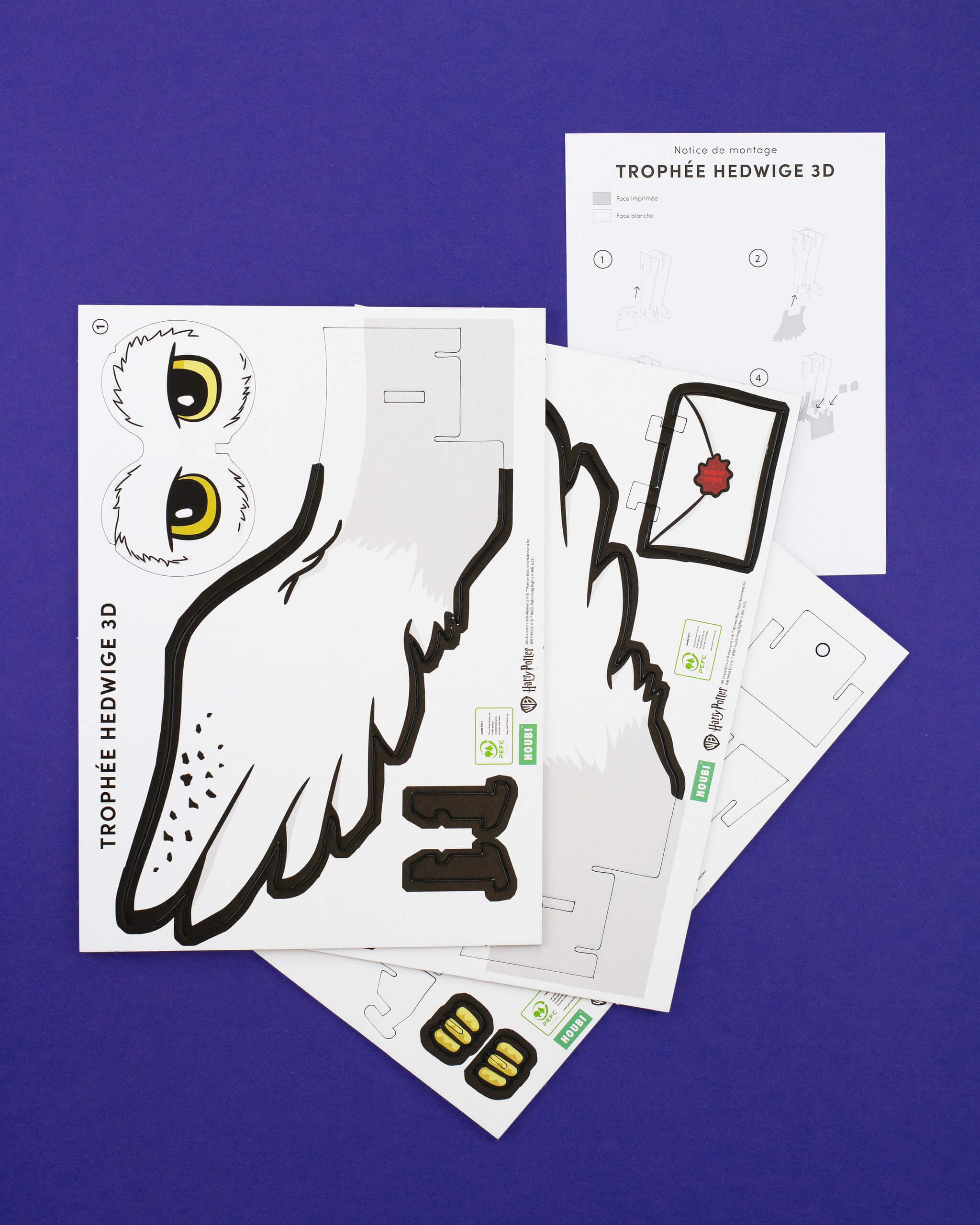 Un kit créatif en carton rigide pour fabriquer un trophée 3D de la plus célèbre des chouettes !