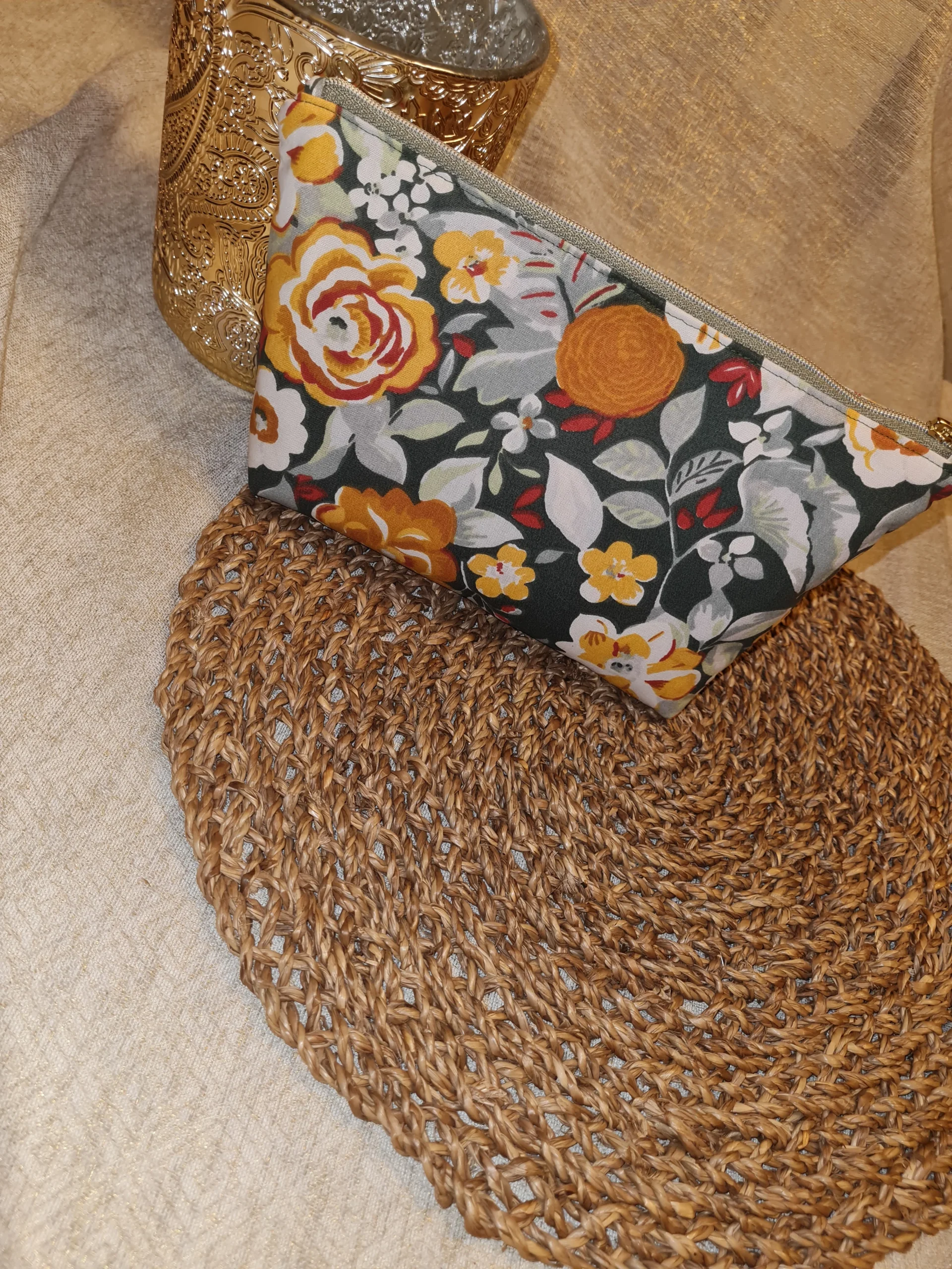 Cette jolie trousse sera parfaite pour transporter votre maquillage. Son intérieur imperméable sera très facile à nettoyer en cas de petit accident (bouchon de rouge à lèvres qui se sauvé, trace de khôl…) un coup d’éponge et hop, c’est propre. Elle passe également en machine à 30°C Taille : L25xH14xP6cm Intérieur : 100% coton enduit […]