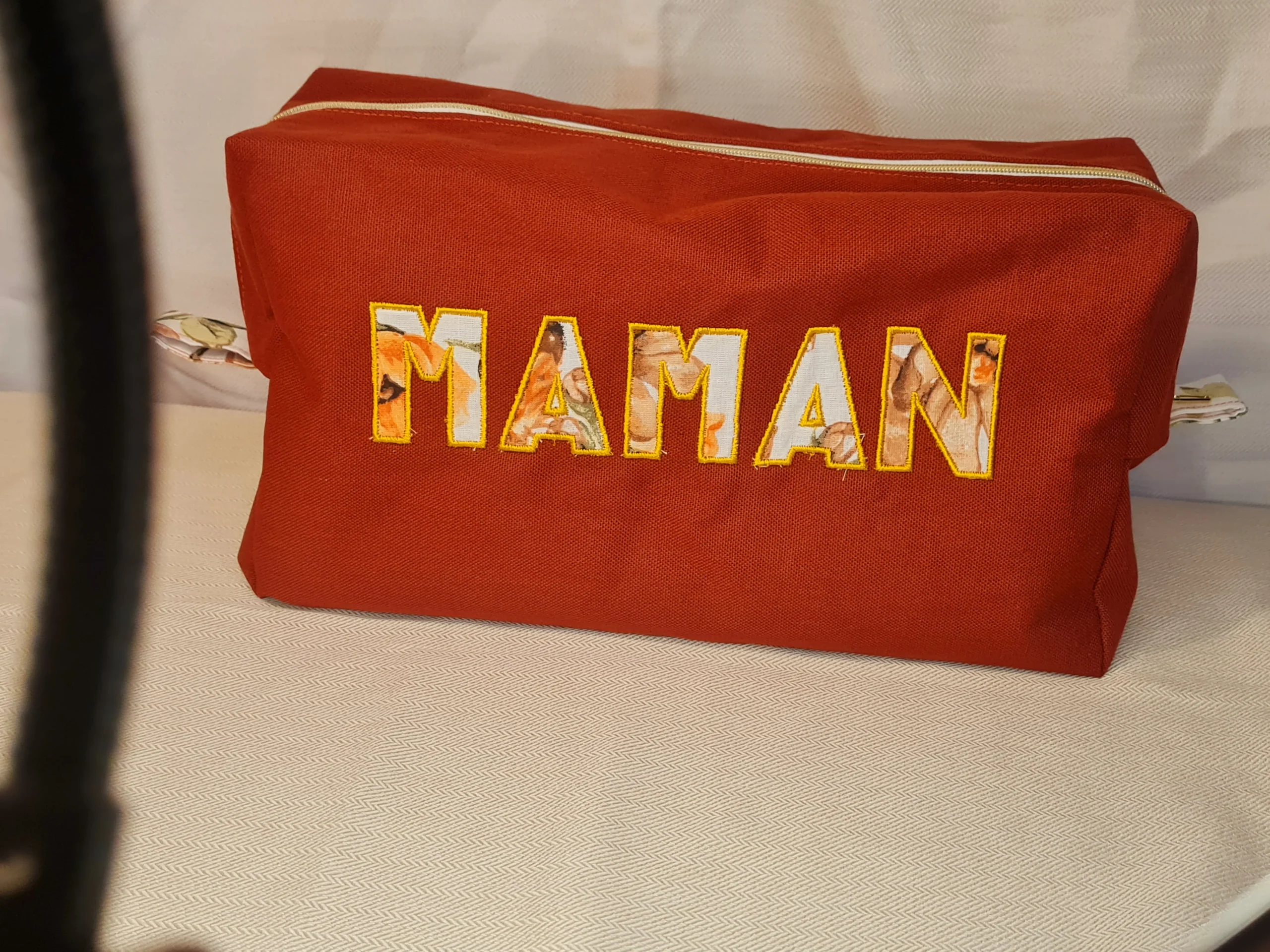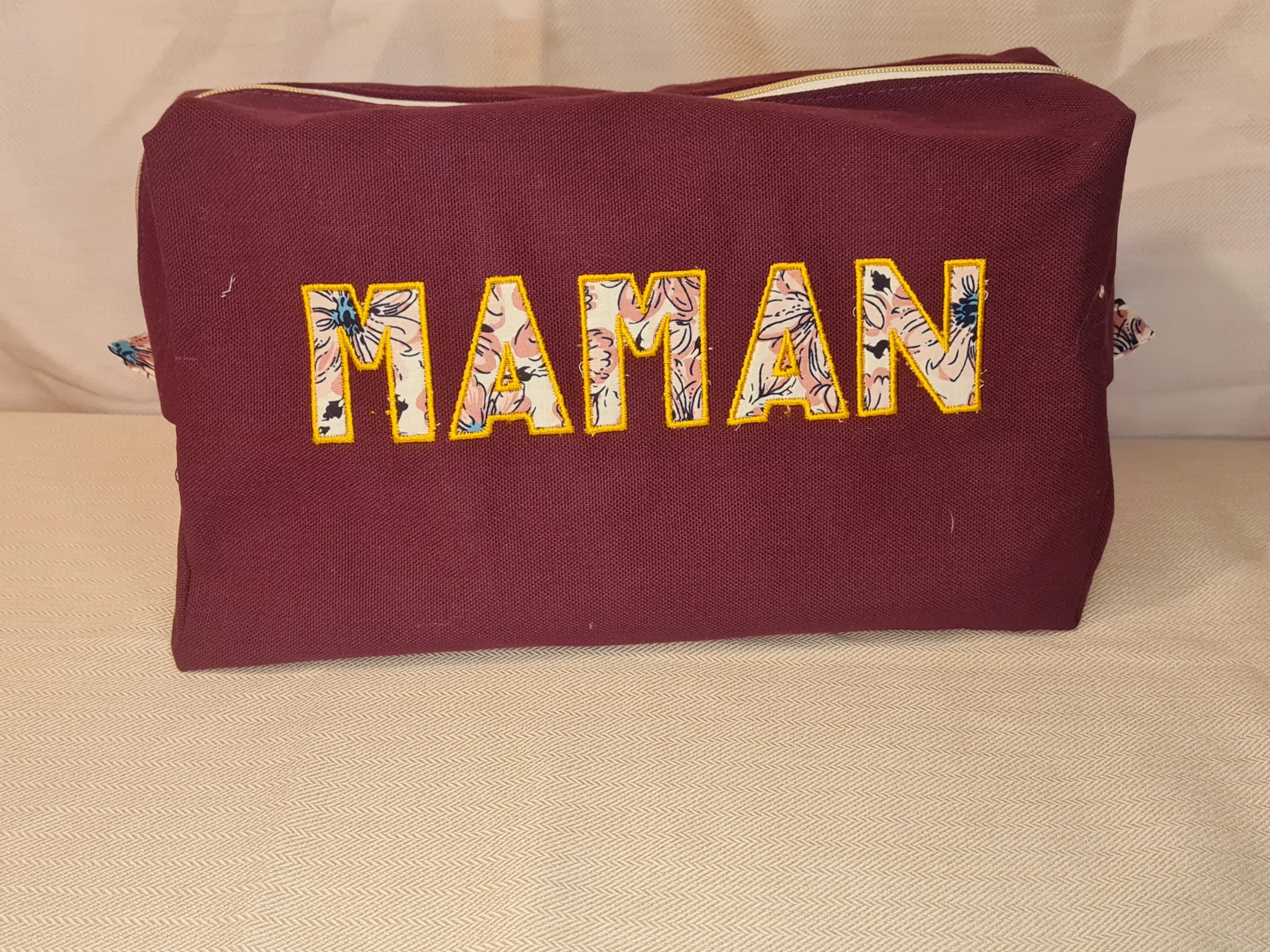 Une grande trousse de toilette avec un joli appliqué « MAMAN »