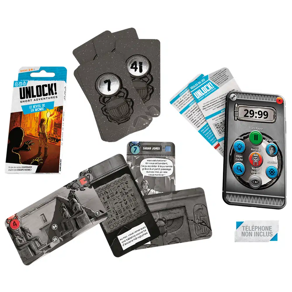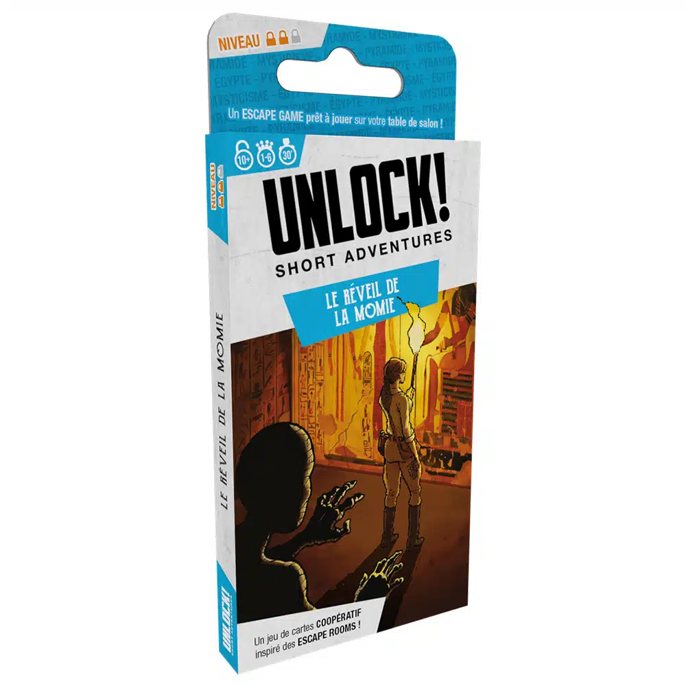 Unlock ! Short Adventures – Le réveil de la momie. Jeu de cartes coopératif, d’enquêtes pour animer vos soirées entre amis ou en famille.