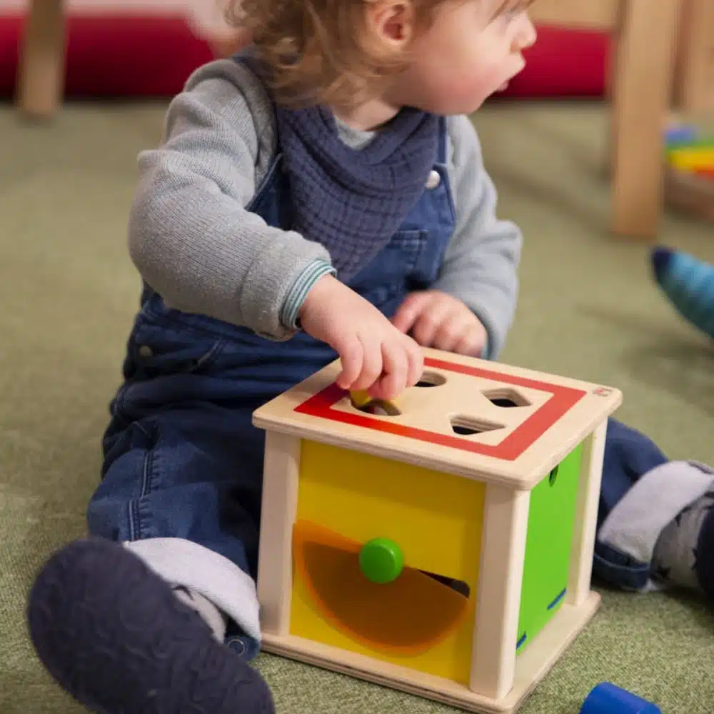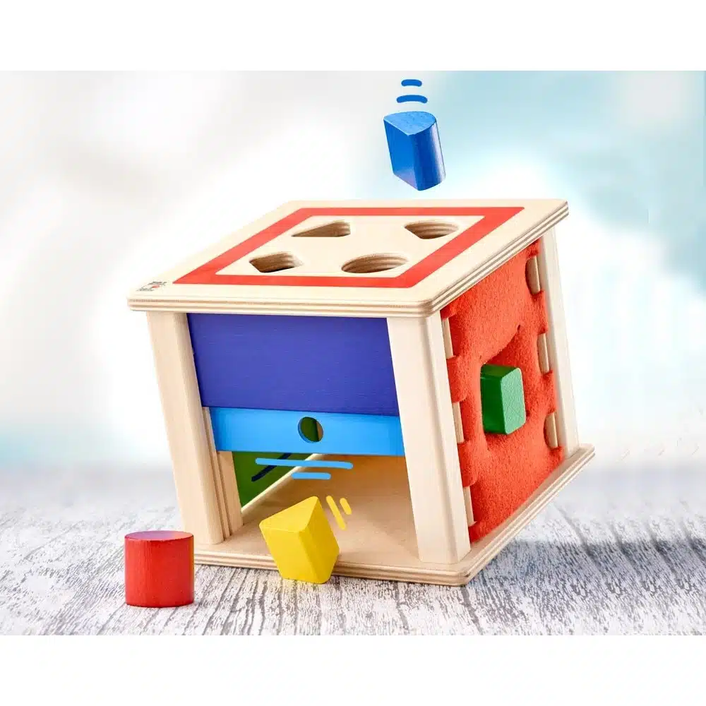 Cette boîte à formes exerce tout particulièrement, et de façon ludique, la motricité fine et les capacités de concentration et elle stimule la reconnaissance et le triage des couleurs et des formes.