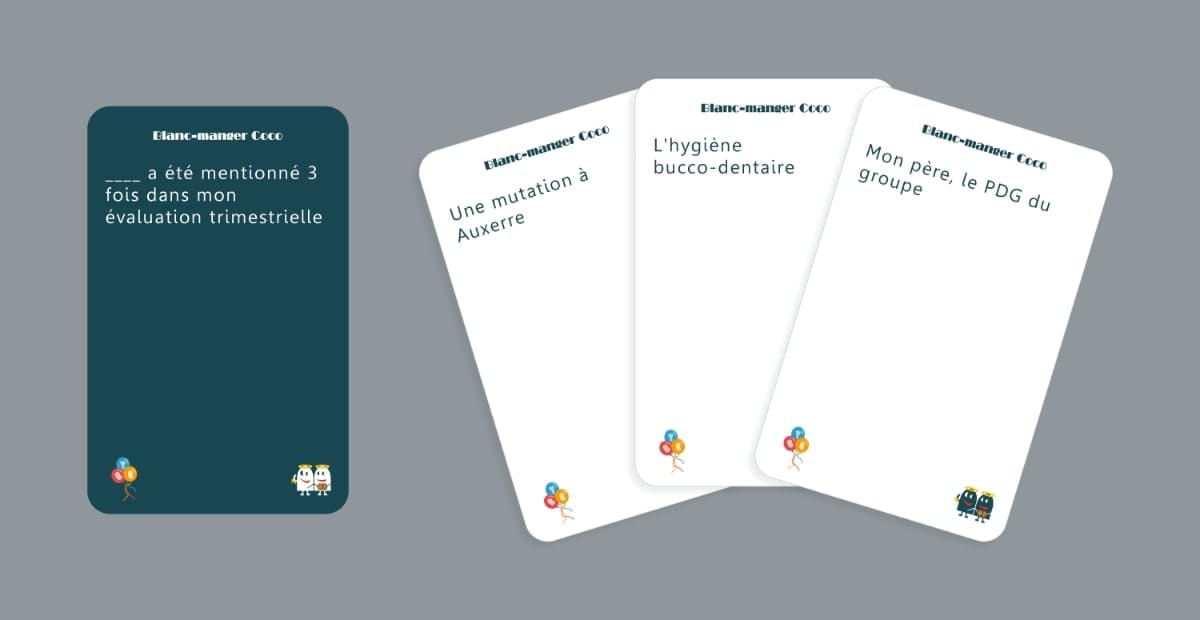 « Pot de Départ », c’est la suite de Blanc-Manger Coco sur le travail, le boulot, le labeur. Oue tu aies déjà fait un stage café-reliure, que tu sois salarié chez Michelin depuis 25 ans ou que tu aies même entendu simplement parler de cet univers chaleureux et bienveillant, alors cet opus a de fortes chances de faire ton bonheur : tu y retrouveras des situations, des personnages, que ton subconscient a enfoui dans ton reptilien. Un jeu à ressortir le jeudi soir avec les collègues pour réveiller le fou-fou qui sommeille en toi !