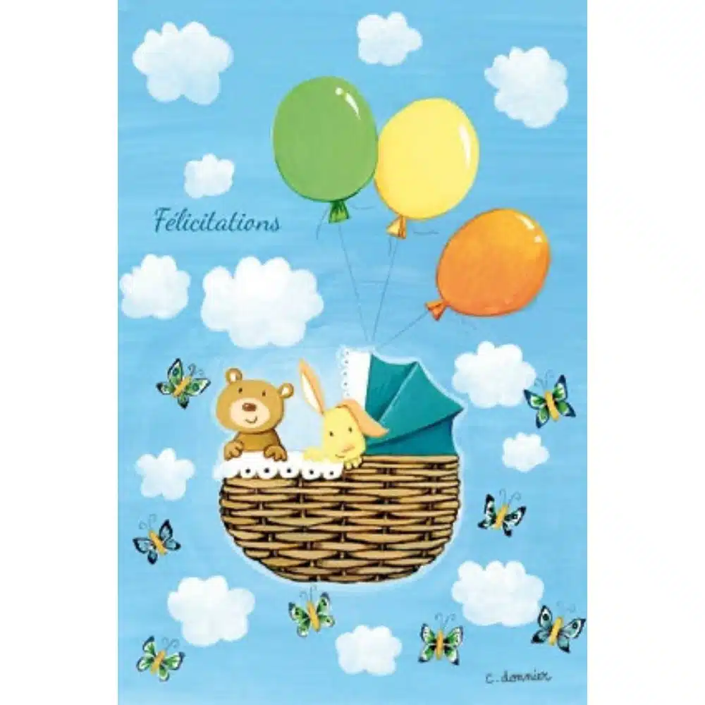 Carte de félicitations rectangulaire 10 cm x 15 cm, fabrication française avec vernis sélectif. Illustratrice Christine Donnier, éditions Titi Pinson.