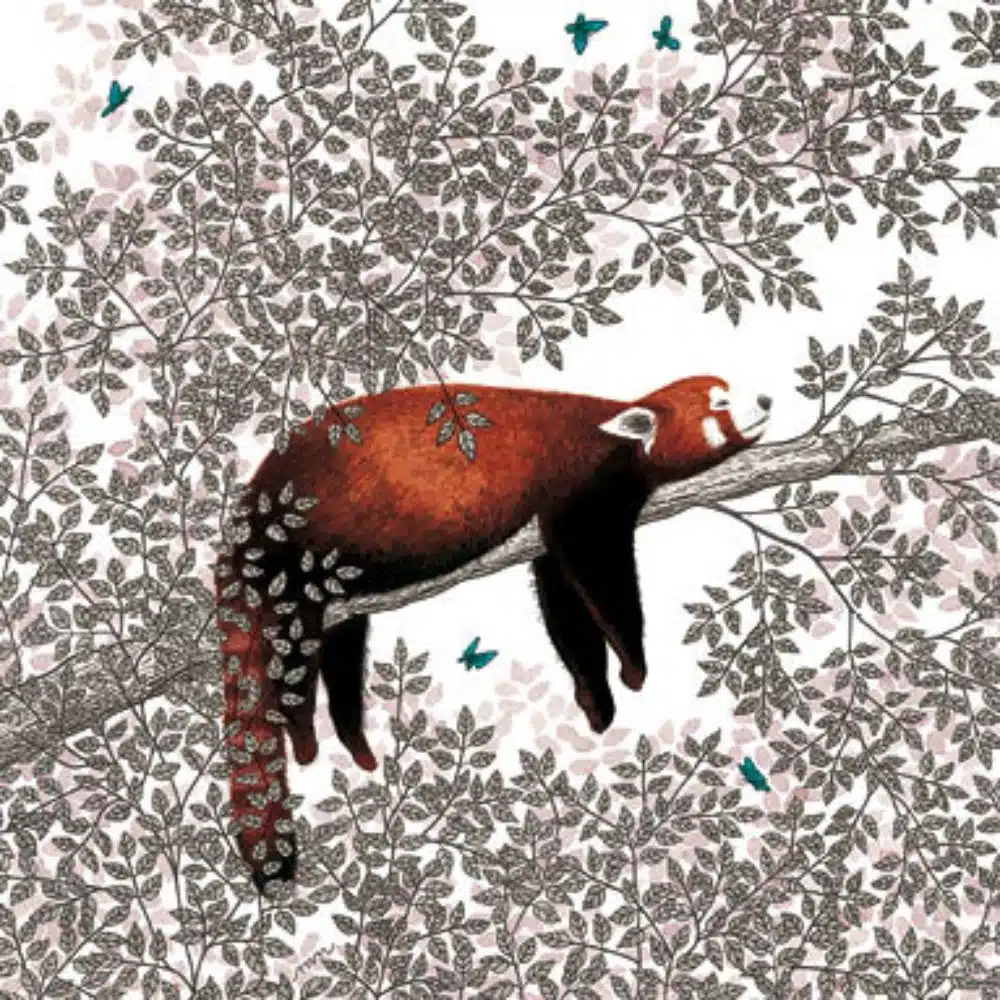 Carte postale carrée 13,5 cm x 13,5 cm, fabrication française avec vernis sélectif. Illustratrice Myriam Nion, éditions Titi Pinson.