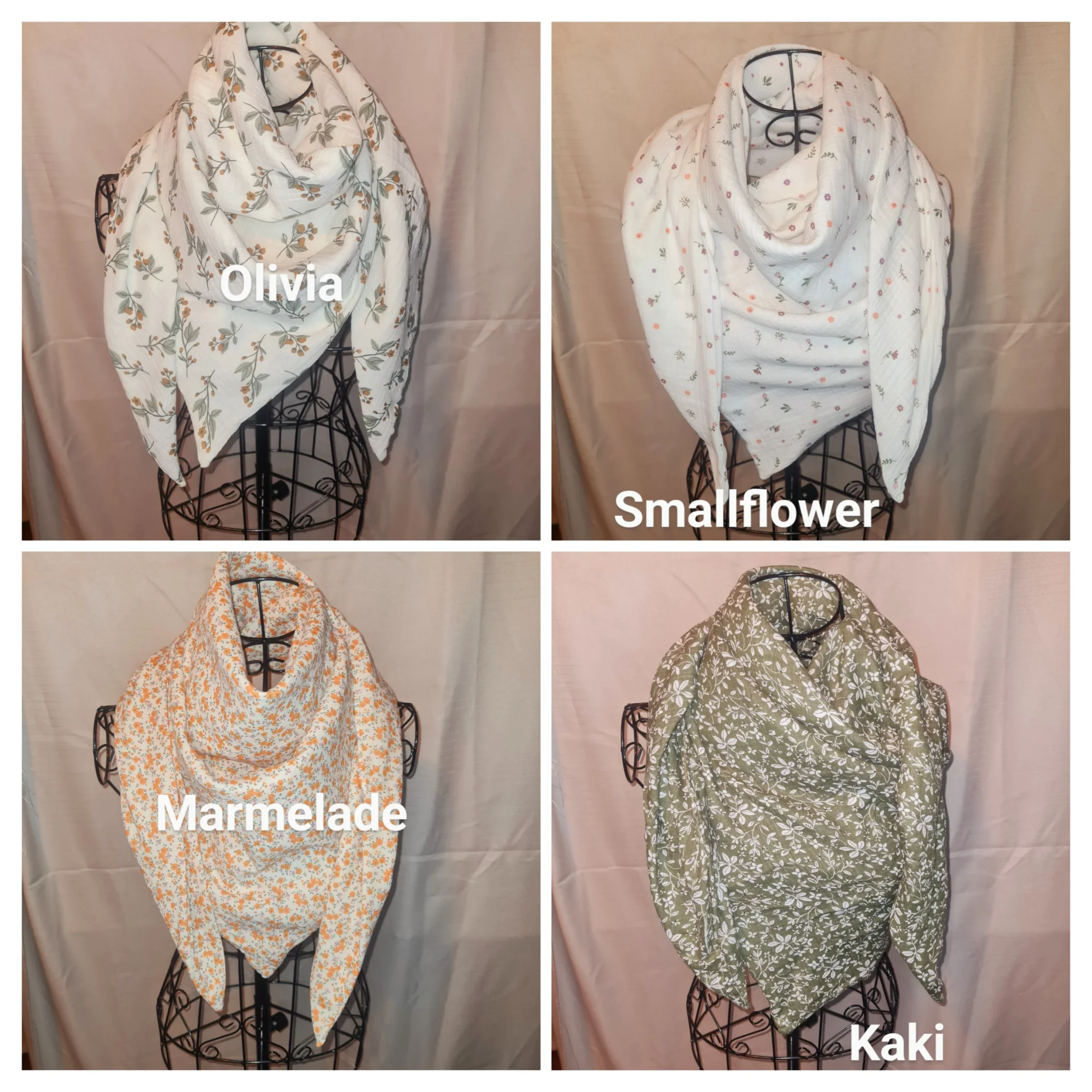 Une méga écharpe en forme chèche (triangle), en double gaze de coton !