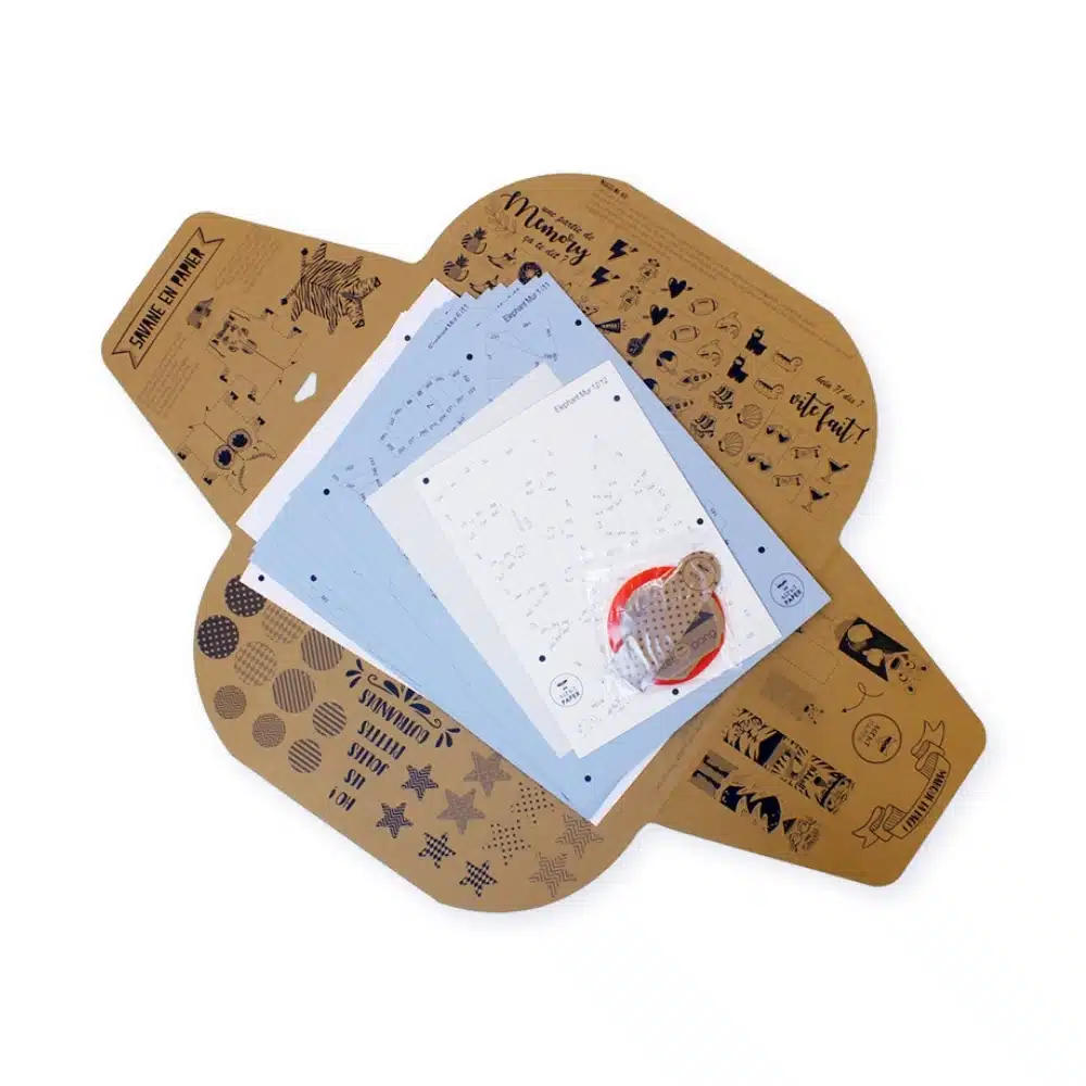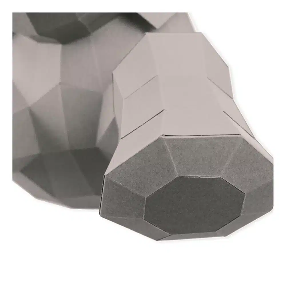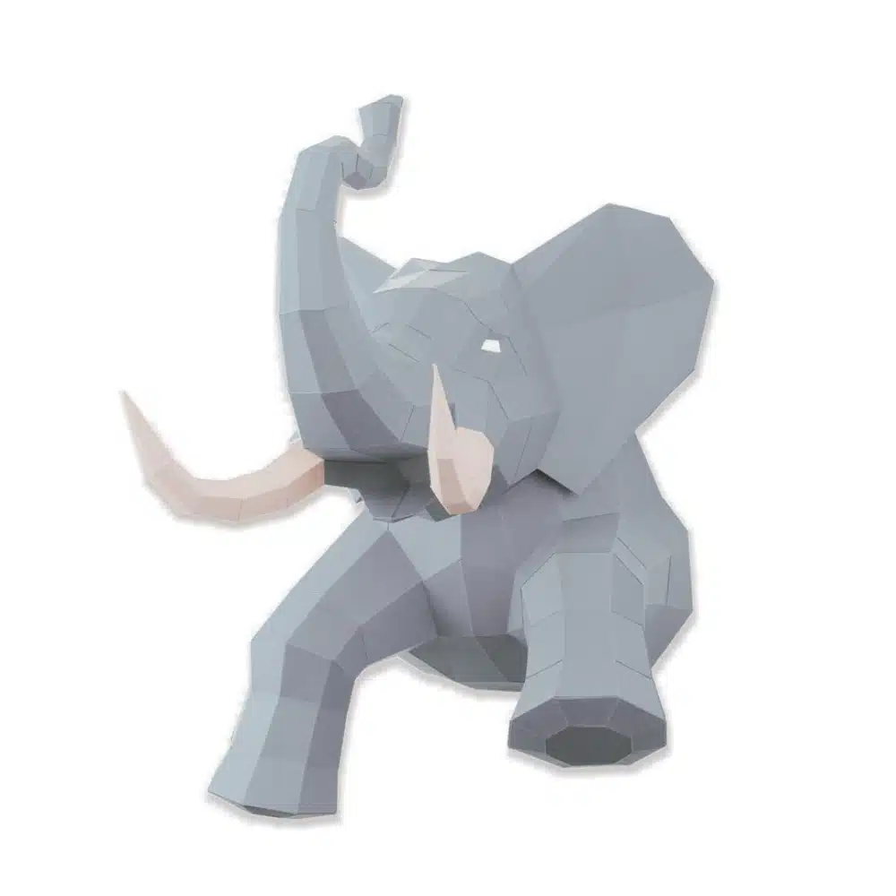 Kit de décoration murale en papier 100% recyclé fabriqué en France. Le kit comprend des planches de pièces pré-découpées, une notice et du scotch double face, tout y est pour construire ce superbe éléphant gris.