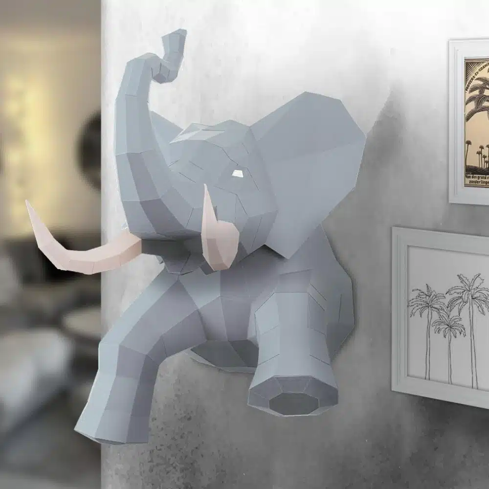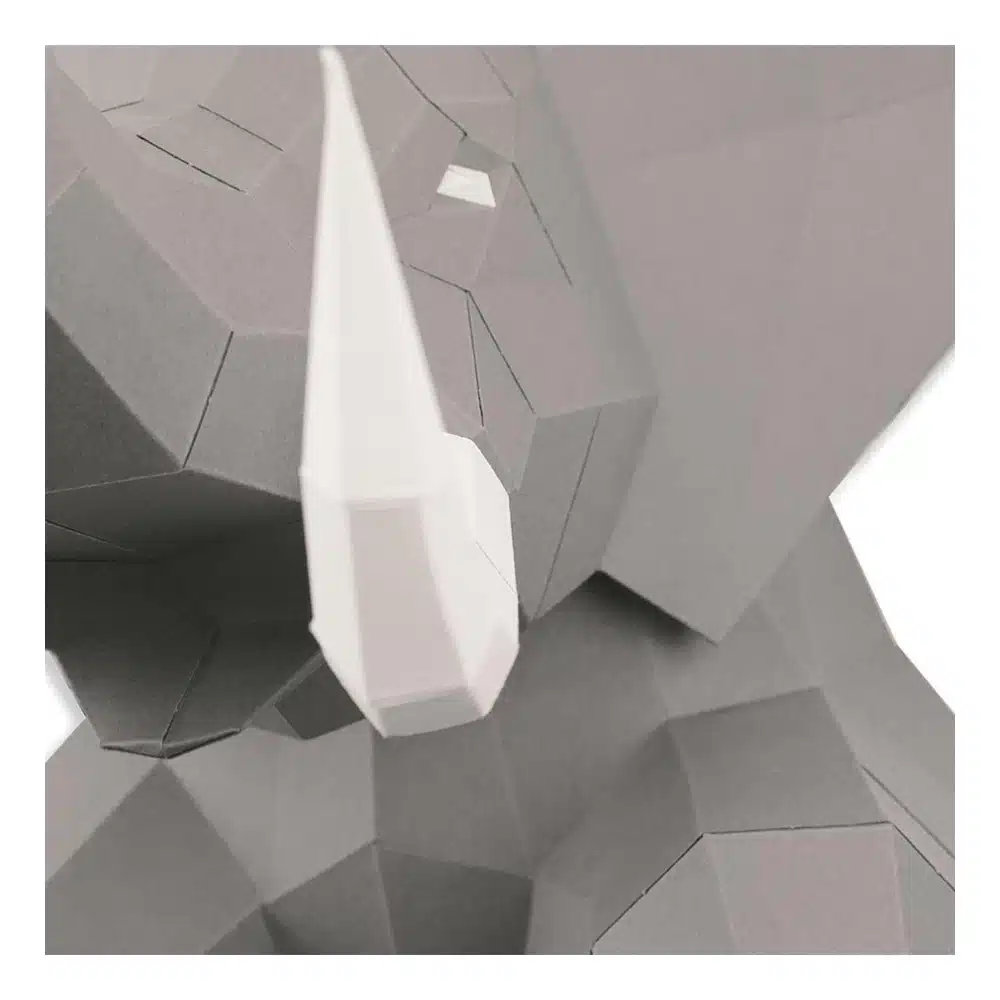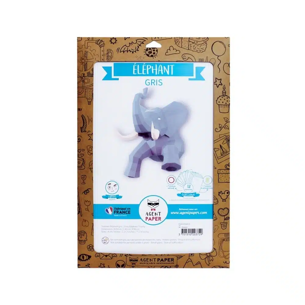 Trophée en papier 3D Eléphant gris, décoration murale originale 100% fabrication française et éco-responsable de la marque Agent-Paper, à monter soi-même niveau expert.