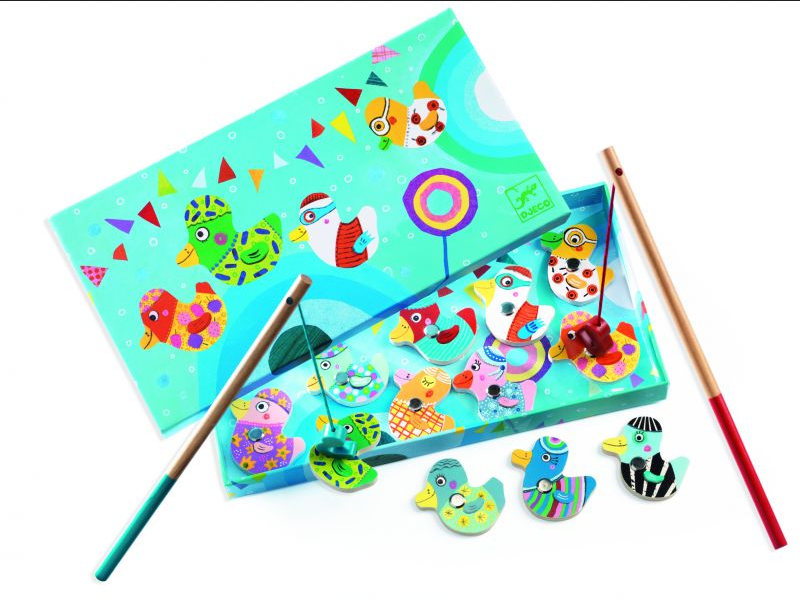 Découvrez ce superbe jeu de pêche magnétique « Fishing Duck ». Un jeu d’adresse avec 12 canards en bois à attraper à l’aide des 2 cannes à pêche fournies.