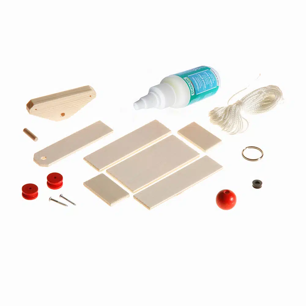 Kit à construire mini funiculaire en bois, avec 5 mètres de ficelle.
