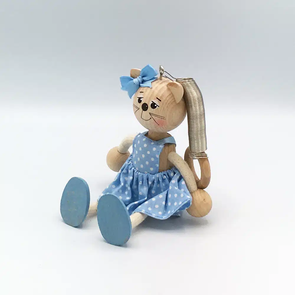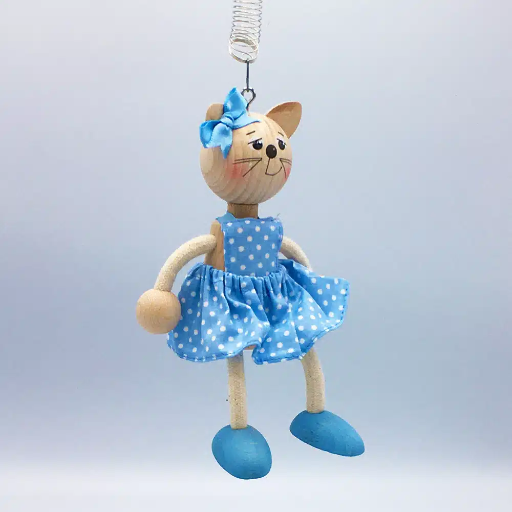 Petit chat en bois à suspendre n’importe où dans la maison. Au-dessus d’un berceau ou d’une table à langer ce mobile ravira les plus petits. Au milieu du salon ou dans la cuisine, il saura égayer votre maison.