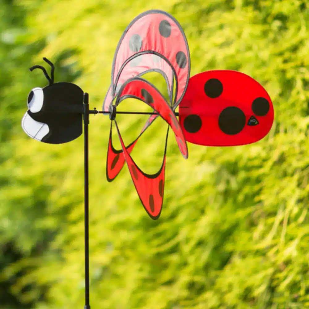 La girouette à planter « Paradise Critters Coccinelle » est très solide, fabriquée en toile de cerf-volant et en carbone.