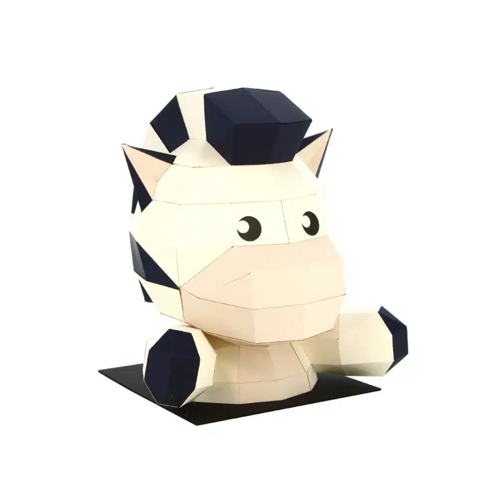 Trophée en papier 3D Animaux surprise – Petit zèbre, décoration originale à poser, 100% fabrication française et éco-responsable, de la marque Agent-Paper, à monter soi-même niveau moyen.