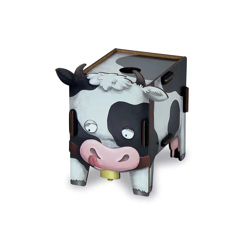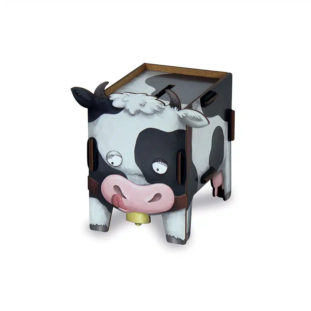Tirelire et boite 2 en 1 en forme de vache ! En bois reconstitué écologique, fabrication Allemande.
