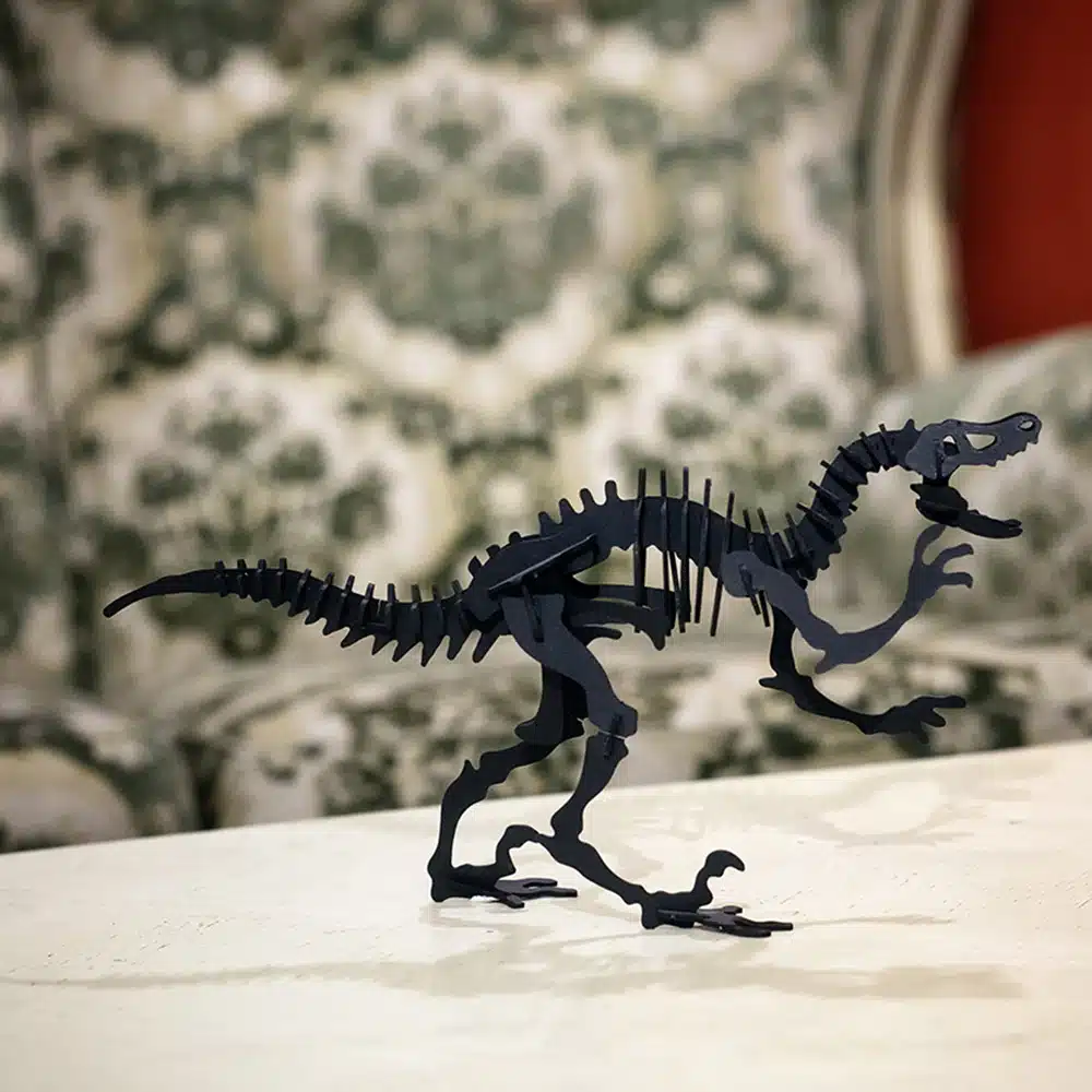 Maquette vélociraptor en carton noir, décoration originale à poser 100% fabrication française et éco-responsable de la marque Agent-Paper, à monter soi-même niveau facile.